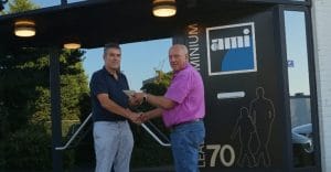 Ook oud-bestuurslid Jac Ewals wordt bedankt voor zijn jarenlange inzet voor het bedrijventerrein.